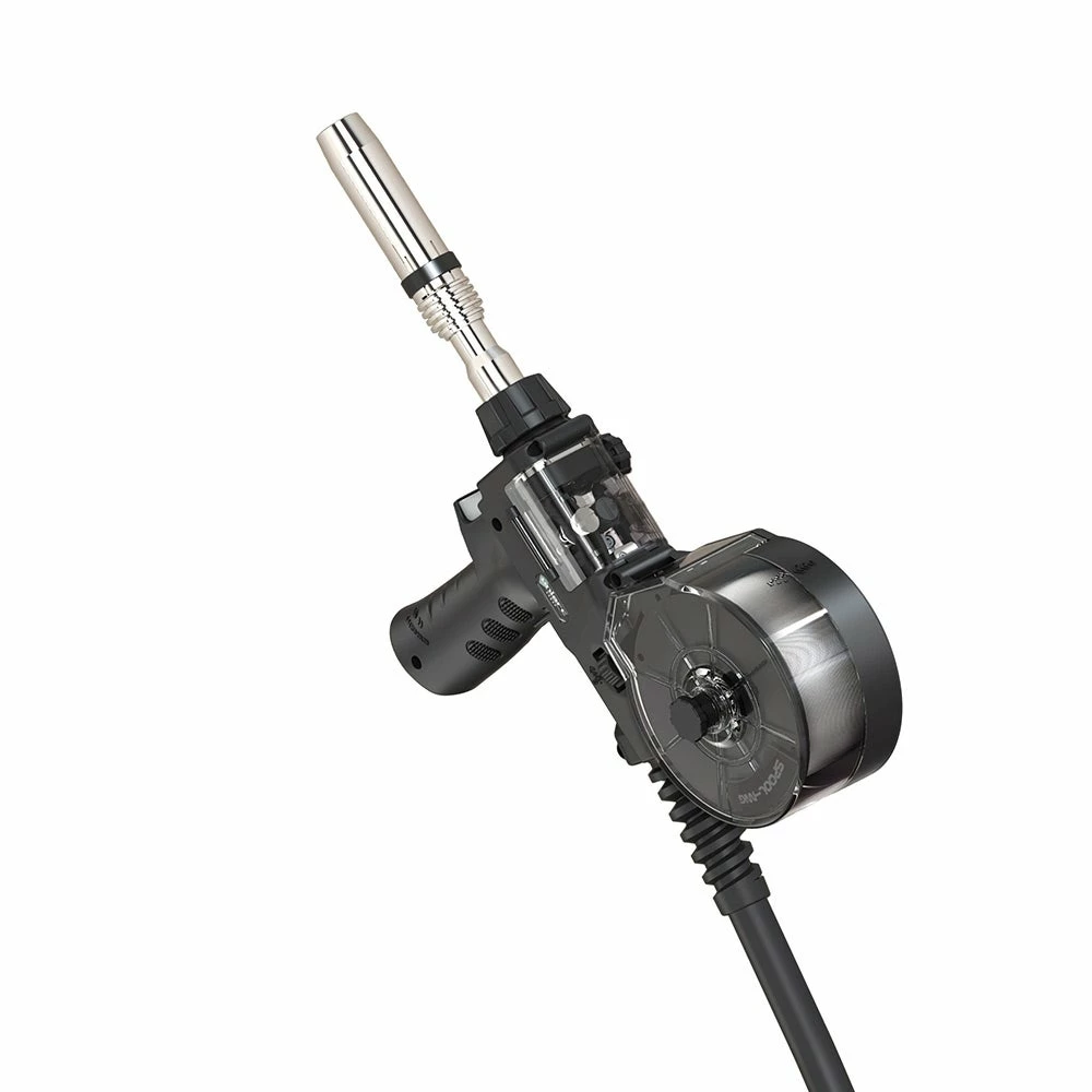 The Binzel style 220 AMP Spool Gun has been engineered for maximum performance when MIG welding softer wires, such as Aluminium. Clear plastic housing allows for full visibility of all moving parts, while the motor is rated for a minimum service life of 1000 hours.